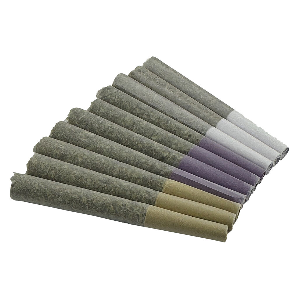 Quality pre-rolls. Three bold strains. One gas-powered lineup. The Gas Mask variety pack features a curated mix of Banjo, Ghost Banner and Gas Mask, which are potent indica and indica dominant cultivars with gassy, citrus and earthy profiles. Each pre-roll is hand packed with whole flower (no trim, no shortcuts) for a smooth and consistent burn and full spectrum flavour. Whether you're exploring the range or stocking up on favourites, this variety pack brings high THC.